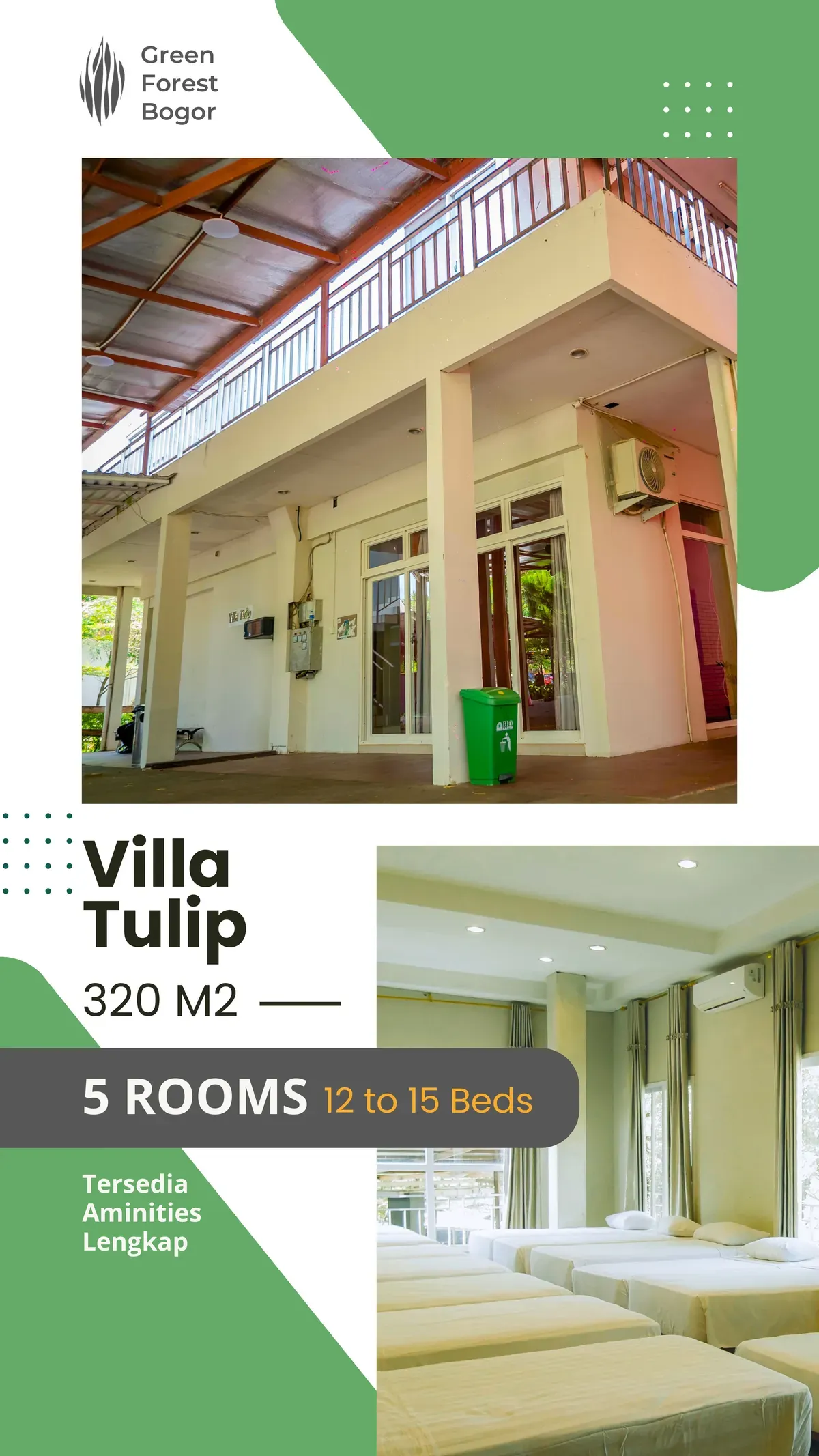 Pilihan sempurna untuk pertemuan intim keluarga atau kumpul tim. Villa Tulip menawarkan hunian yang tenang, elegan, didampingi dengan pemandangan alami yang memesona.